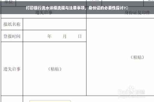 在日常生活中,我们可能需要打印银行流水,比如办理贷款、查询交易记录等,很多人对于打印银行流水是否需要身份证存在疑问,本文将详细解答这一问题,并介绍打印银行流水的流程与注意事项,以便大家更好地了解并顺利办理相关业务。