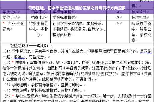 青春是一段充满挑战和机遇的旅程,在这段旅程中,有人选择了走进军营,为祖国和人民奉献自己的青春热血,在这条路上,有时会遇到一些意想不到的困难和挑战,我要讲述一个关于青春、挑战和勇气的故事——当兵路上,初中毕业证遗失,青春如何继续前行?