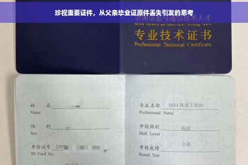 摘要:父亲毕业证原件的丢失引发了我对重要证件珍惜的思考。这件事提醒我们,应妥善保管个人重要证件,以防丢失带来的不便和损失。也需认识到证件对个人发展的重要性,以及在生活中妥善管理个人物品的意义。这次事件敲响了警钟,让我们更加珍视个人证件,提高生活管理意识。