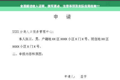 在当今社会,无论是贷款申请、信用卡办理,还是签证申请、租房等,收入证明已成为一项至关重要的证明材料,它不仅体现个人的经济能力,更是评估个人信用状况的关键指标之一,本文将详细介绍申请人收入证明的内容要点、注意事项以及在各应用场景下的实际操作,助您更好地理解和运用收入证明。