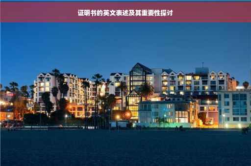 摘要:,,证明书英文为"certificate",它在多个领域具有重要地位。无论是学术、职业还是日常生活中,证明书都扮演着证明个人资质、资格或经历的重要角色。它能够帮助人们获得信任、展示成就,并在求职、升学或其他重要场合中起到关键作用。了解并正确使用证明书对于个人发展至关重要。