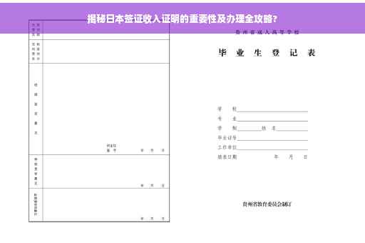 摘要:本文将向你揭示日本签证申请中收入证明的重要性,并为你提供办理指南。了解如何通过收入证明来证实自己的经济能力,以及办理过程中需要注意的事项,是成功申请日本签证的关键。本文旨在帮助申请人顺利获得签证,为你的日本之行提供便利。