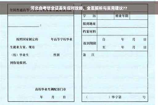 摘要:面对河北自考毕业证丢失的问题,考生不必过分焦虑。本文提供了全面的解决方案和实用建议。应立即联系颁发毕业证的学校或自考办公室,了解相关补办流程。准备好个人身份证明、准考证等相关材料以便快速办理。还需注意保护个人信息,避免被不法分子利用。本文旨在帮助毕业生高效解决毕业证丢失问题,顺利继续学业或职业生涯。