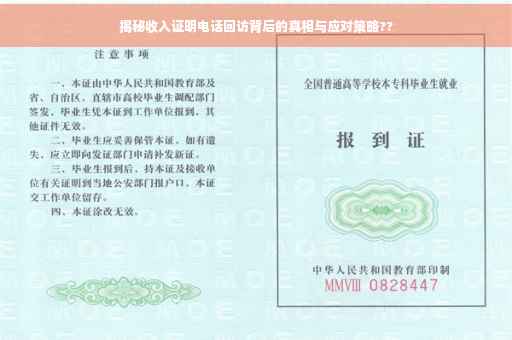 摘要:本文将探讨收入证明电话回访背后的真相及应对之策。通过深入了解,我们发现电话回访不仅是确认个人收入信息的手段,还可能涉及其他核实工作。面对这种情况,我们应保持警惕,准确提供信息,并留意个人隐私保护。本文旨在帮助读者理解电话回访的目的,并提供应对策略,确保个人权益不受侵害。