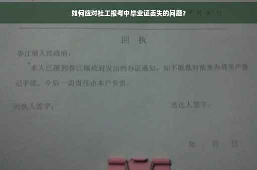 报考社工过程中遇到毕业证丢失问题,不必过于担心。应立即采取以下措施应对:前往原毕业学校或教育主管部门开具学历证明,证明自身学历及毕业情况。按照要求及时补办毕业证明或学位证,确保报名过程顺利进行。在报名时,应提供所有相关证明材料,确保信息的真实性和完整性。遇到毕业证丢失情况,应保持冷静,及时采取措施解决问题。