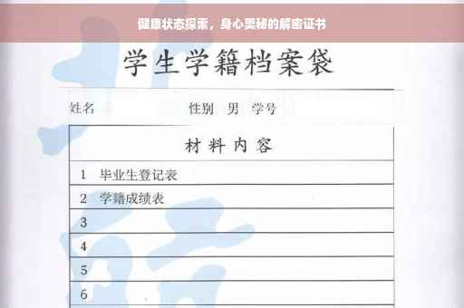 摘要:健康状态证明书是一份重要的健康证明文件,用于证明个人的健康状况。本文将探索身心健康的奥秘,介绍如何通过健康的生活方式、良好的饮食习惯、适当的运动和良好的心态来维护身心健康。通过本文的阅读,读者可以更好地了解如何保持健康状态,提高生活质量。