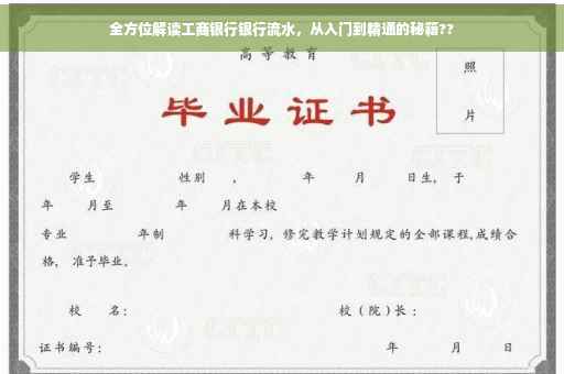 摘要:本文将全方位解读工商银行银行流水,从入门到精通,揭示银行流水的含义、作用以及如何正确理解和使用。文章将详细介绍工商银行银行流水的各项内容,包括收入、支出、余额等,并提供实用技巧,帮助读者更好地管理个人财务。通过阅读本文,您将更全面地了解工商银行银行流水,从而做出更明智的财务决策。