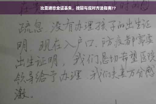 我们需要了解毕业证丢失的原因,可能是由于疏忽大意、保管不当等原因导致毕业证遗失,而对于比亚迪员工来说,丢失毕业证可能会带来以下后果: