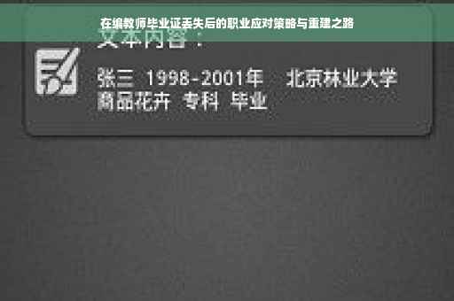 作为一名在编教师,如果遭遇毕业证丢失的困境,确实可能让你感到焦虑和无助,但不必惊慌,这并不是世界末日,本文将为你提供详细的指南,帮助你应对毕业证丢失的困境,并重建你的职业生涯。