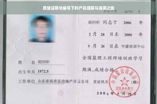 摘要:,,质量证明书编号是产品质量追溯与保障的关键标识。通过此编号,可轻松追溯产品的生产流程、质量检测及售后信息,确保产品从生产到消费者手中全程可控。这不仅体现了企业对产品质量的严谨态度,也为消费者提供了坚实的权益保障。质量证明书编号的重要性在于连接生产者与消费者,共同构建信赖的桥梁,确保产品质量的稳定与可靠。