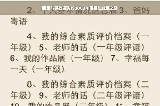 摘要:遗失的2002年函授毕业证引发了对过往的回顾和寻找之路的开启。这篇内容主要讲述了一个人丢失了珍贵的毕业证,随后展开了一段寻找证件的旅程。通过回忆、寻求帮助和多方查找,最终可能找到了毕业证或者获得了替代证件的方法。整个过程中,体现了对过去学习经历的珍视和对证件的深深渴望。