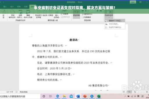面对事业编制毕业证丢失的情况,我们应保持冷静和乐观,采取积极的应对措施,通过登报声明、学校补办、备份证件等方式应对,并采取预防措施避免再次丢失,希望本文能为您提供帮助,祝您顺利解决毕业证丢失的问题,前程似锦!