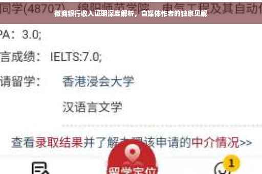 徽商银行收入证明详解:自媒体作者深度剖析。文章详细解读了徽商银行收入证明的相关内容,包括收入证明的开具流程、所需材料以及注意事项等。通过本文,读者可以全面了解徽商银行收入证明的相关知识,为办理相关手续提供参考。文章语言简洁明了,内容实用,有助于读者更好地理解和使用徽商银行的收入证明服务。