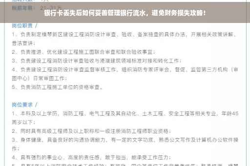 面对银行卡遗失情况,我们应保持冷静,及时采取应急措施,了解银行流水的重要性,保护好自己的合法权益,通过妥善方式处理银行流水,可有效避免不必要的损失,加强个人信息安全保护意识,防止个人信息泄露和诈骗事件的发生。