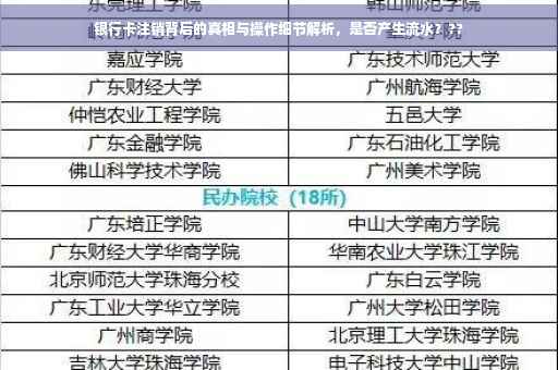 摘要:本文将探讨银行卡注销时是否会留下流水记录,揭示背后的真相与操作细节。文章将解答读者对于银行卡注销流程的疑惑,包括注销后银行流水账单的情况,以及注销银行卡时需要注意的事项。阅读本文,读者将了解银行卡注销的整个过程,以及如何正确处理注销后的相关事宜。