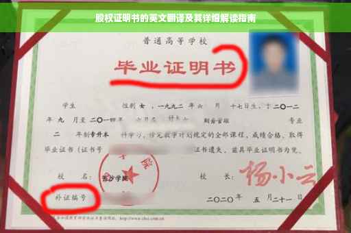 摘要:本文介绍了股权证明书的英文翻译及其详细解读。股权证明书是证明股东权益的重要文件,翻译时需注意准确性和专业性。本文将通过详细解读股权证明书的各个部分,帮助读者了解其内容及其含义,包括股东姓名、股权比例、公司注册信息等。也提醒读者在股权交易、公司管理等场景下股权证明书的重要性。