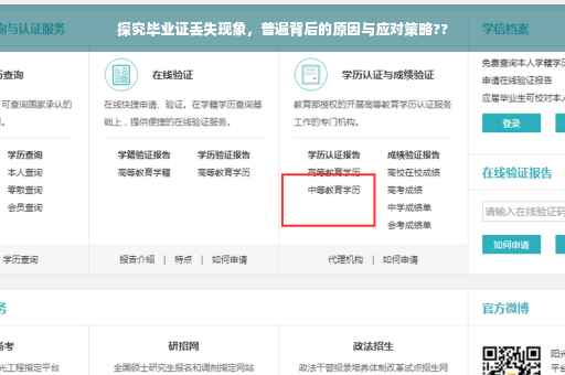 毕业证丢失的现象并不罕见,但我们可以通过加强证件管理、完善流程等方式来降低这种情况的发生,学校和社会也应承担起相应的责任,为毕业生创造一个更好的环境,遇到毕业证丢失的问题时,我们应及时采取应对策略,以最大程度地减少损失,希望本文能为大家提供一些帮助。