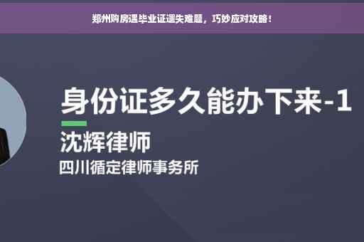 摘要:在郑州购房过程中遇到毕业证遗失问题,不必过于担心。可采取以下策略巧妙解决:前往原毕业学校开具证明并留下复印件;咨询房产交易相关部门,了解学历证明的具体要求;如有必要,可咨询专业律师,确保解决方案合法有效。通过这些措施,可顺利解决毕业证遗失问题,顺利完成房产交易。