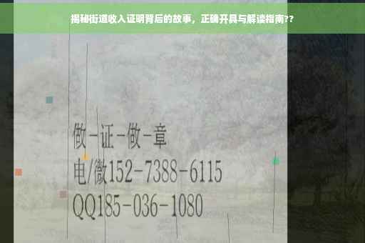 摘要:本文将揭示街道收入证明背后的故事,介绍如何正确开具与解读这份重要文件。通过本文,读者将了解收入证明的作用、开具流程、注意事项以及解读技巧,帮助大家在需要时能够准确、顺利地获取收入证明,保障自身权益。