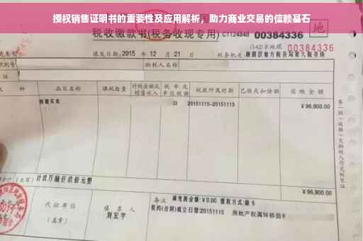 授权销售证明书在商业活动中具有重要意义,它保障了商品来源的合法性,维护了消费者权益,促进了商业活动的有序进行,作为商家,应了解并正确使用授权销售证明书,以提高消费者信心,树立品牌形象,作为消费者,应学会查验授权销售证明书的真伪,以保障自己的合法权益,在未来的商业发展中,授权销售证明书将继续发挥其重要作用,为商业活动的规范化、有序化提供有力支持。