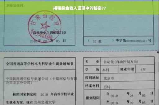 摘要:本文将揭示收入证明中的奖金秘密。通过深入了解奖金的构成、计算方式和影响因素,读者可以更好地理解奖金在收入证明中的地位和作用。本文将介绍不同类型的奖金及其特点,帮助读者识别隐藏在收入证明中的奖金细节,并探讨如何最大化奖金收入。阅读本文,将为您揭示奖金的秘密,助您更好地规划个人财务。