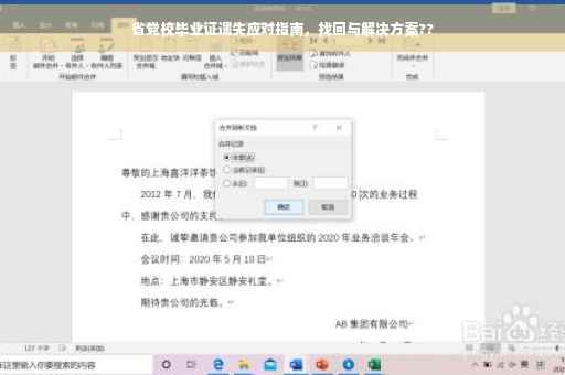 摘要:关于省党校毕业证遗失的问题,首先需保持冷静,及时采取行动。可通过联系原毕业学校或党校的教务部门,咨询毕业证遗失的补办流程。同时准备好相关身份证明和学籍资料以便快速找回。如无法直接补办原件,可尝试申请相关证明或记录,证明学历的真实性。预防再次遗失,建议备份毕业证照片或电子档。遇到此类情况,正确应对是关键。
