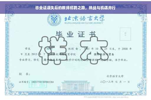 摘要:,,教师招聘之路对于遗失毕业证的人来说充满挑战与机遇。尽管失去了证书,但他们仍可通过其他途径证明自己的教育背景和资格。面对挑战,他们需积极寻找替代路径,如通过其他相关证书、工作经验或个人项目展示自身能力。他们也能借此机会重新审视自己的职业规划,发掘新的机遇,如在线学习、进修课程或推荐信等,为未来的职业发展铺平道路。