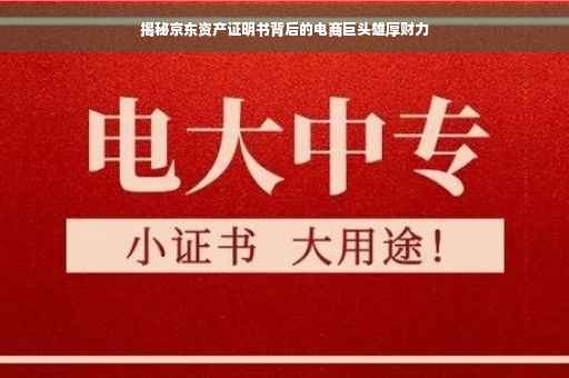摘要:京东资产证明书揭示了电商巨头京东的雄厚财力。这份证明书详细展示了京东的资产规模、财务状况和投资实力,展现了其在电商行业的领先地位。通过这份证明书,人们可以更加了解京东的经济实力和其作为电商巨头的地位。