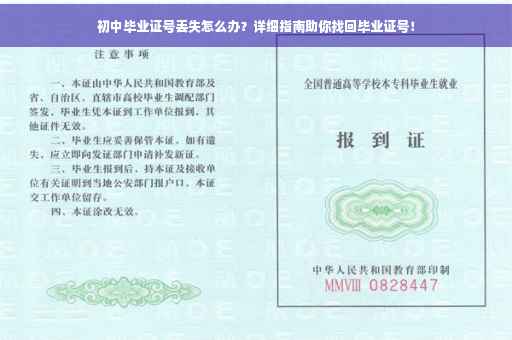 初中毕业证号丢失的自媒体文章摘要:,,初中毕业证号丢失不必过于担心,本文为你提供一份详细指南助你解决问题。联系原毕业学校确认毕业证编号;前往当地教育部门或招生考试机构进行补办申请;准备好相关证明材料如身份证、学历证明等。本文还将指导你如何预防证件丢失及应对未来可能出现的类似情况,让你轻松应对生活中的小问题。