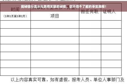 在当今社会,银行流水已不仅仅是个人财务的象征,更是信用与能力的证明,在求职过程中,特别是在跳槽时,银行流水作为个人财务状况的重要证明材料,逐渐被各大企业所重视,一份稳定且良好的银行流水记录,能够真实地反映个人的收入水平、支出习惯和理财能力,为企业评估求职者是否具备胜任岗位的能力提供重要参考。