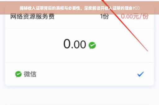 摘要:本文将揭示开收入证明的理由及其背后的真相与必要性。通过深入了解,我们发现收入证明在现代社会具有重要的作用,它不仅用于贷款申请、房屋租赁,还可能影响个人的职业发展和信用评估。本文将探讨为什么收入证明如此重要,以及它如何影响我们的日常生活。阅读本文,你将更全面地了解收入证明的重要性。