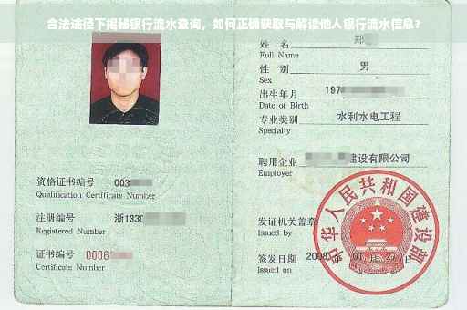 摘要:,,本文介绍了在合法授权下如何查询并解读他人银行流水信息的方法。需要注意的是,此过程必须严格遵守法律法规,不得侵犯他人隐私。通过合法途径获取银行流水信息,可以帮助个人或企业了解资金流动情况,但绝对不能用于违法犯罪行为。提醒广大公众,在查询他人银行流水时,务必遵守法律,尊重他人隐私。