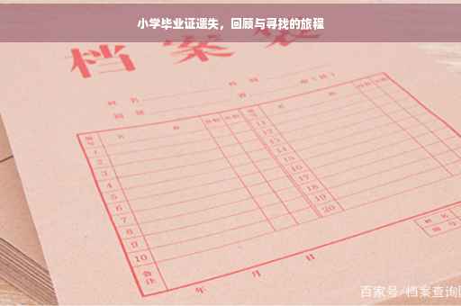 时光荏苒,岁月如梭,在我们成长的道路上,小学毕业证是一张标志着人生新阶段的证书,有一天,我发现自己的小学毕业证遗失了,这篇文章的目的是回忆那段美好的时光,分享我在寻找毕业证过程中的经历与感受。