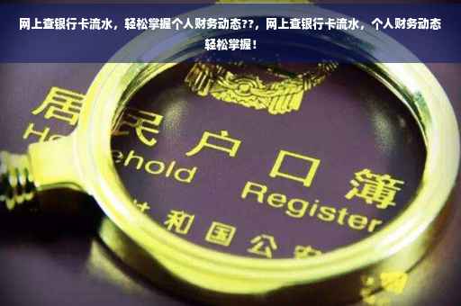 随着互联网的普及和数字化时代的到来,越来越多的人开始关注个人财务管理,在这个背景下,网上查询银行卡流水成为了一种方便快捷的方式,帮助我们更好地掌握自己的财务动态,本文将详细介绍如何通过网上渠道查询银行卡流水,以及注意事项和常见问题解答,帮助大家更好地管理个人财务。