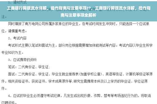摘要:本文将详细介绍工商银行网银流水,包括操作指南和注意事项。读者将了解如何登录工商银行网银,查询流水账单,并学会识别账单中的各项交易记录。本文还将提醒用户在操作过程中需要注意保护个人信息和密码安全,确保资金安全。通过本文,读者将更好地管理和使用工商银行网银流水。