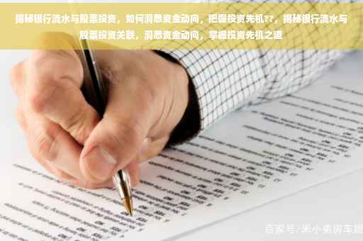 在当今社会,随着金融市场的日益繁荣,越来越多的人开始涉足股票投资领域,而在投资过程中,银行流水作为一个重要的财务指标,往往能够为我们提供洞悉资金动向的宝贵信息,本文将深入探讨银行流水与股票投资之间的联系,帮助投资者更好地把握投资先机。