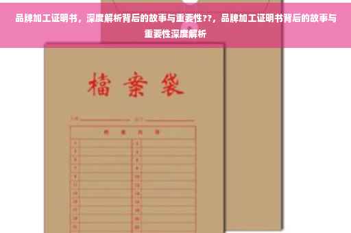 在当今市场竞争激烈的环境下,品牌已成为消费者选择产品的重要依据,品牌加工证明书作为品牌信誉和产品质量的有力证明,对于消费者和生产厂家来说具有至关重要的意义,本文将围绕品牌加工证明书展开深入探讨,带您了解品牌加工证明书的背后故事及其重要性。