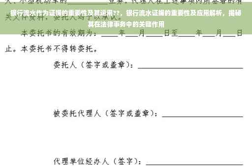 在现代社会,随着经济的发展和金融行业的繁荣,银行流水作为证据在各类民事、经济甚至刑事案件中的重要性日益凸显,银行流水不仅记录了个人或企业的资金往来情况,还能反映出经济活动中的诸多细节,本文将详细介绍银行流水作为证据的特点、作用及其运用。