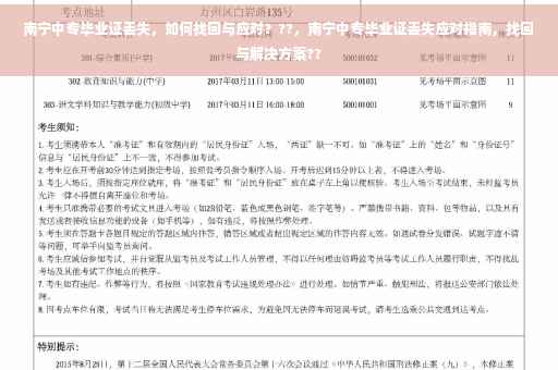 南宁中专毕业证丢失虽然麻烦,但只要采取正确的应对措施,就能顺利解决问题,也要重视其他重要证件的保管,学会保护个人隐私,避免个人信息泄露,如有更多疑问或需要帮助,请随时联系我。