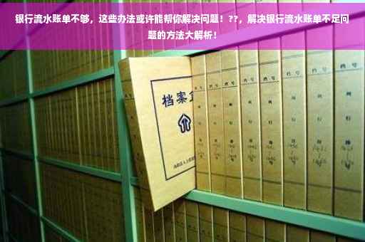 摘要:面对银行流水账单不足的问题,有多种方法可尝试解决。包括通过增加收入来源,如兼职工作或优化个人财务管理,减少不必要的支出,以增加账户余额和流水记录。还可以与银行沟通,了解其具体要求和标准,寻求专业建议。这些方法或许有助于解决银行流水账单不足的问题。