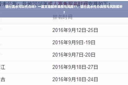 随着社会的快速发展,银行业务日益普及,银行流水作为个人或企业信用评估的重要依据之一,其重要性日益凸显,关于银行流水是否可以代办的疑问也逐渐增多,本文将围绕这一主题展开讨论,带您了解银行流水代办的相关问题,揭示其中的真相与潜在风险。