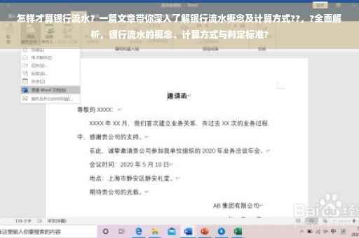 摘要:银行流水是指银行账户内的资金流动记录,包括存款、取款、转账等交易明细。本文深入解析了银行流水的概念,详细介绍了银行流水的计算方式,帮助读者更全面地了解银行流水。通过阅读本文,您将了解如何正确计算银行流水,以及在日常生活中的实际应用。