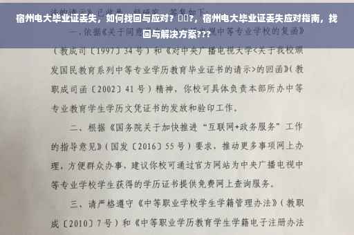 一位宿州电大的毕业生遇到了毕业证丢失的困扰,毕业证作为学历的重要证明文件,一旦丢失,对于个人未来的职业发展、升学深造等方面都会带来诸多不便,面对这样的情况,应该如何找回与应对呢?本文将为大家提供详细的解决方案和建议。
