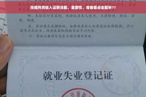 随着房价不断上涨,越来越多的购房者选择按揭贷款购房,在申请按揭贷款的过程中,收入证明成为了不可或缺的一环,本文将详细解析按揭购房收入证明的重要性,以及准备收入证明时需要注意的要点,帮助购房者顺利获得贷款,实现安居梦想。