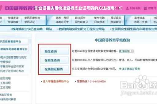 毕业证丢失后,轻松查找毕业证号码的方法。遇到毕业证遗失问题不必慌张,可以通过多种途径快速找回自己的毕业证号码。包括联系毕业学校教务处查询、登录学信网在线查询、查看个人档案等。这些方法简便快捷,有效帮助你解决毕业证号码丢失的困扰。
