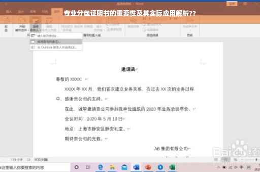 在当今社会,随着经济的发展和行业的细分,专业分包已经成为许多行业普遍存在的现象,专业分包证明书作为证明分包业务合法合规的重要文件,其重要性日益凸显,本文将详细介绍专业分包证明书的作用、内容、办理流程以及实际应用,帮助读者更好地了解和使用这一重要文件。