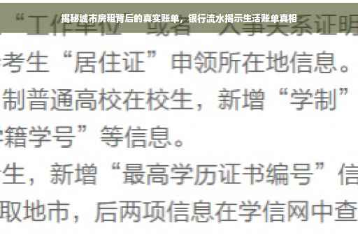 随着城市化进程的加速,越来越多的人涌向城市,寻求更好的工作和生活机会,城市生活的高成本也让许多人背负着沉重的经济压力,房租作为城市生活中最大的开支之一,对于许多人来说已经成为一项重要的负担,本文将探讨房租银行流水的重要性,揭示城市生活的真实账单,帮助人们更好地理解和规划自己的财务状况。