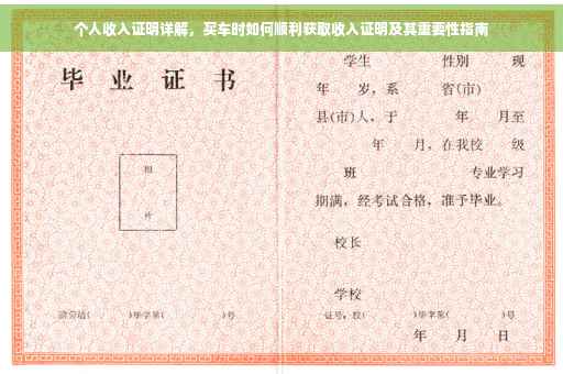 摘要:本文将详细介绍买车时个人收入证明的重要性,以及如何顺利获取和理解收入证明。文章指出,收入证明是购车过程中的关键文件,能够证明个人的经济状况和还款能力。本文将指导读者了解收入证明的内容,包括薪资、奖金、津贴等收入来源,并强调在申请贷款购车时,提供真实有效的收入证明能够加速审批过程。读者将学会如何准备和提供收入证明,以确保购车过程的顺利进行。