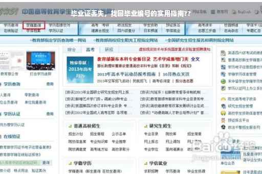 毕业证是我们人生中重要的证件之一,它代表着我们的学历和学业成就,有时候由于各种原因,我们可能会遗失这个重要的证件,一旦毕业证丢失,毕业编号也随之难以直接获取,毕业编号是我们个人学历信息的重要组成部分,找回毕业编号变得至关重要,本文将指导你如何在这一困境中找寻解决方案。