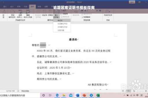以下是逾期困难证明书的模板示例: